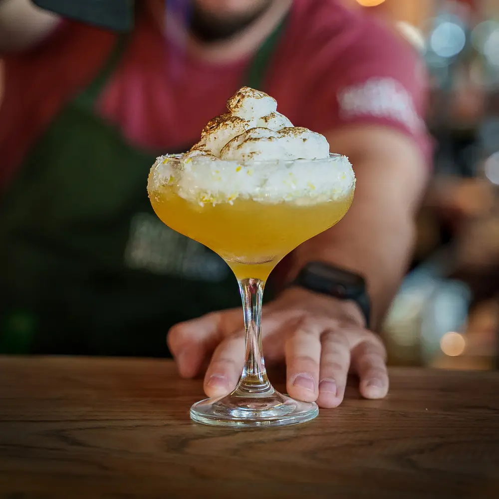 Teremana Blanco Tequila, limoncello, lime, lemon, agave – lemon salt rim, torched meringue