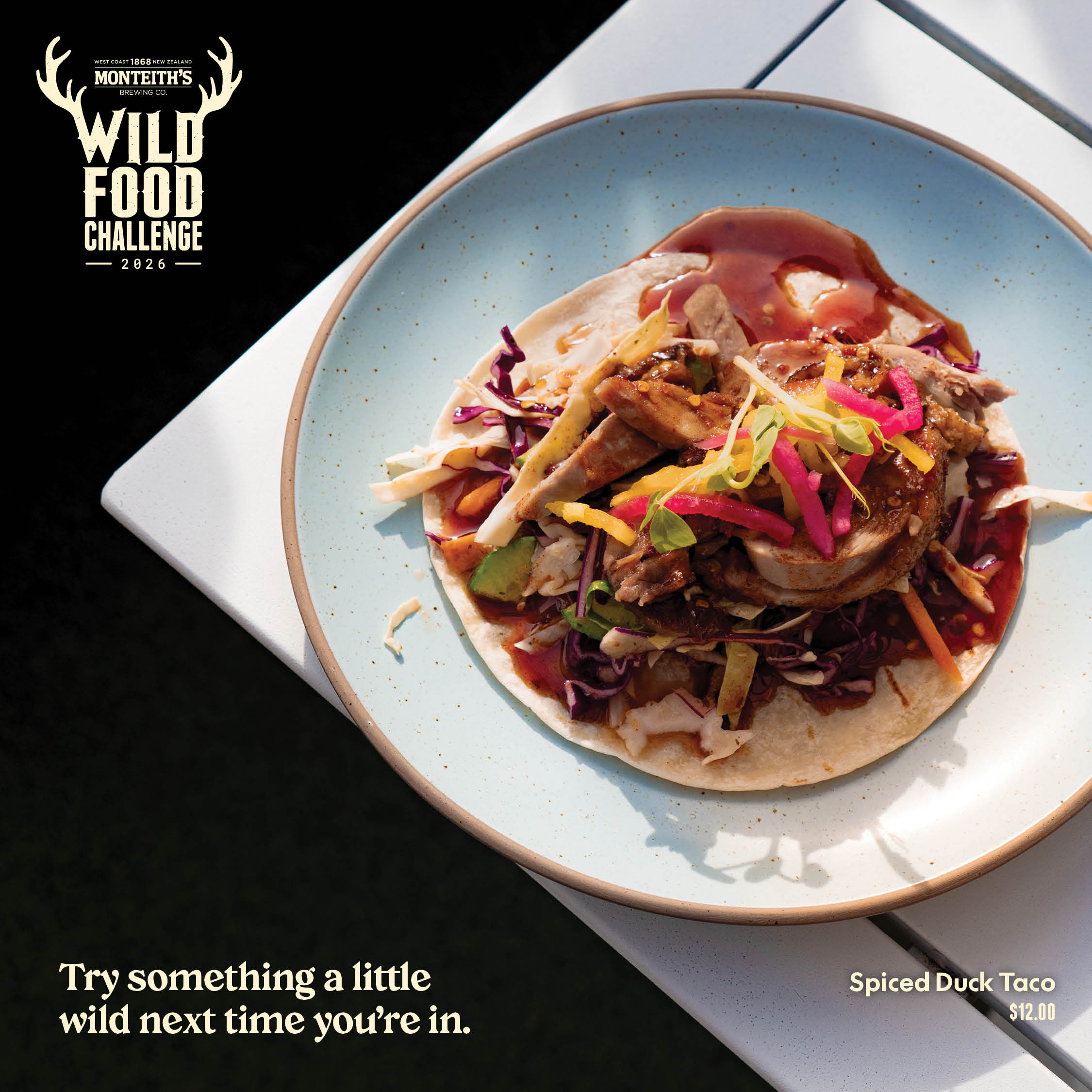 Seared spiced duck breast in a soft taco with crisp apple slaw and a spicy Asian-style sauce.