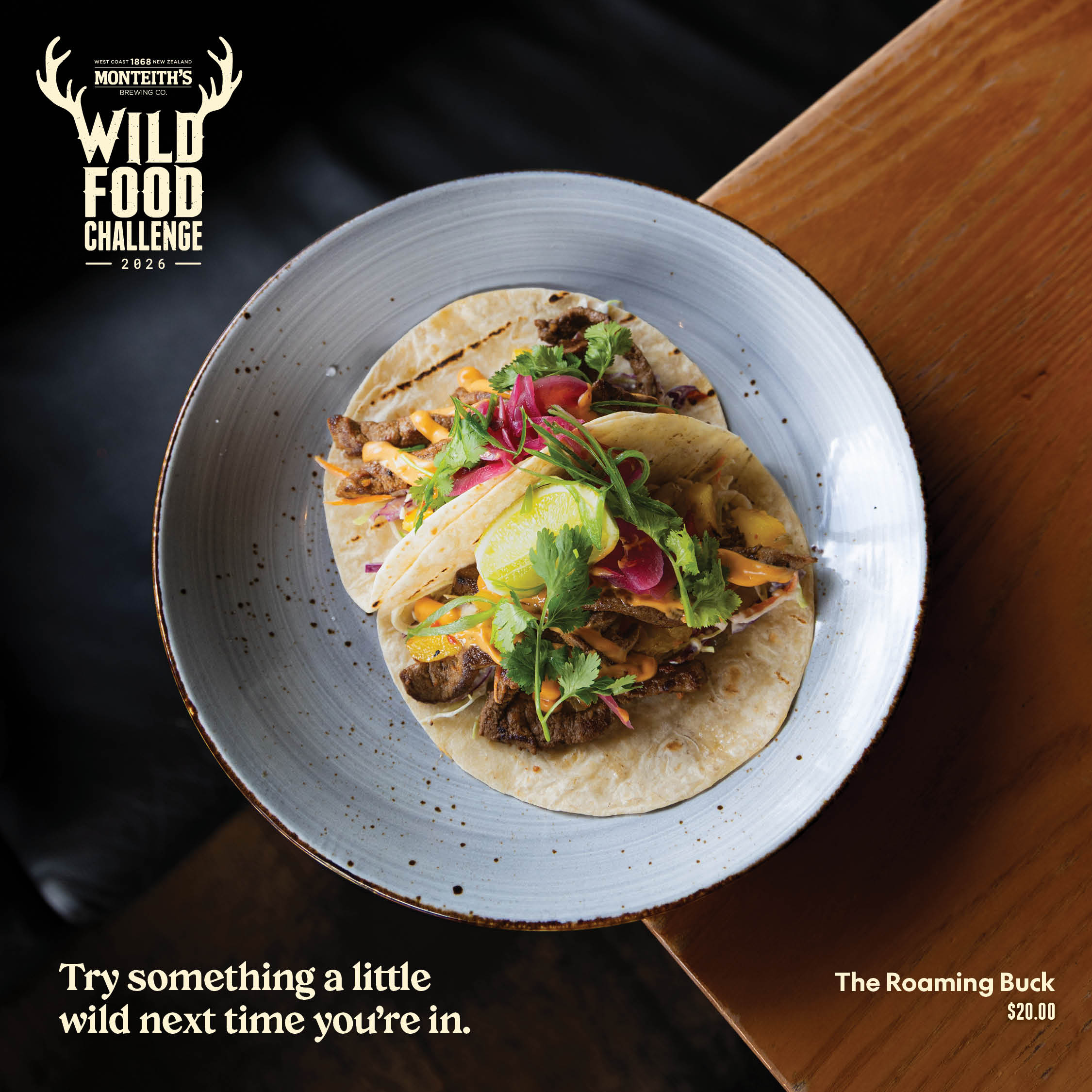 Juicy venison steak in a soft taco with charred pineapple salsa, pickled red onions, smoked chipotle crema, fresh coriander, and lime.